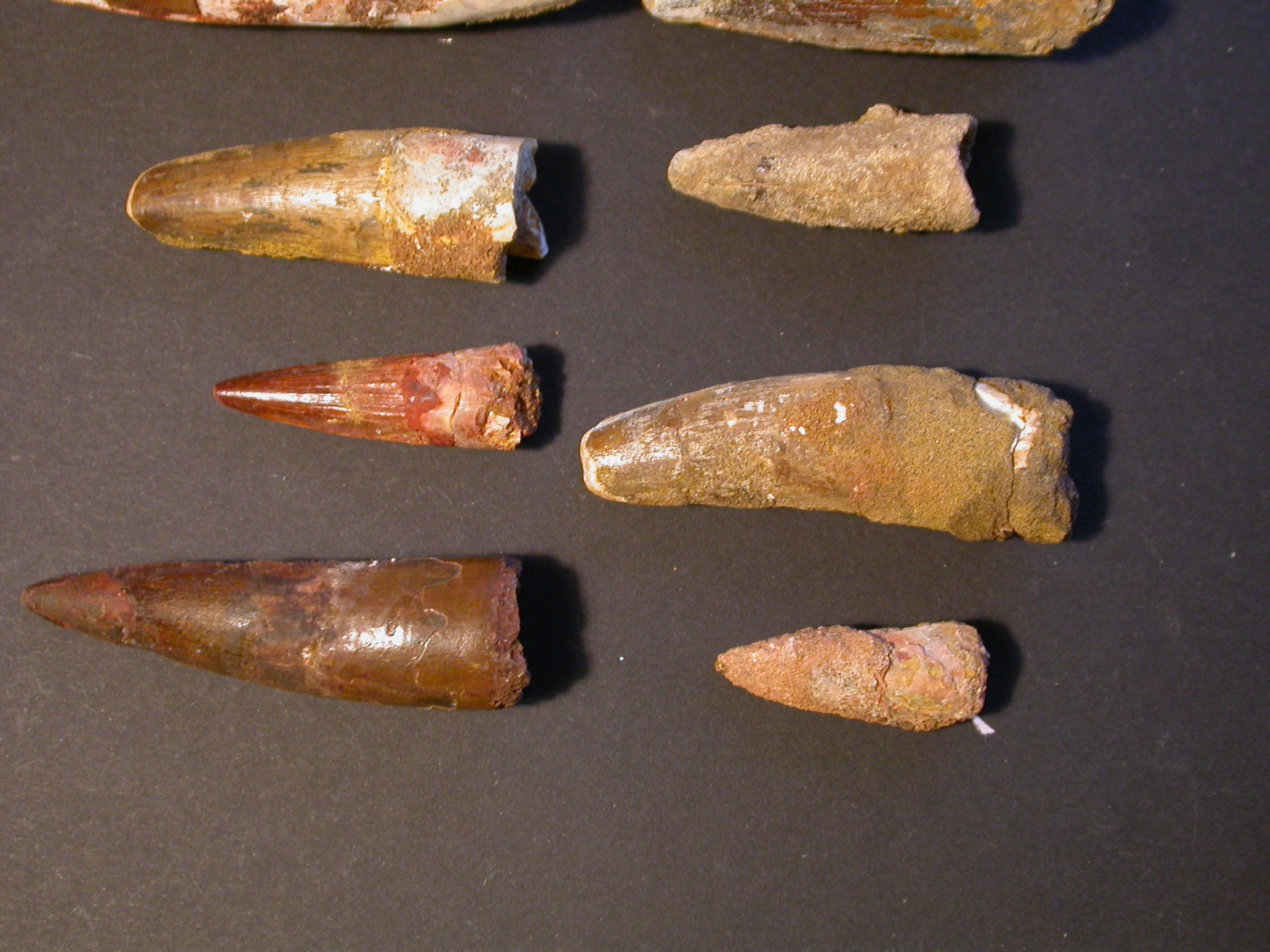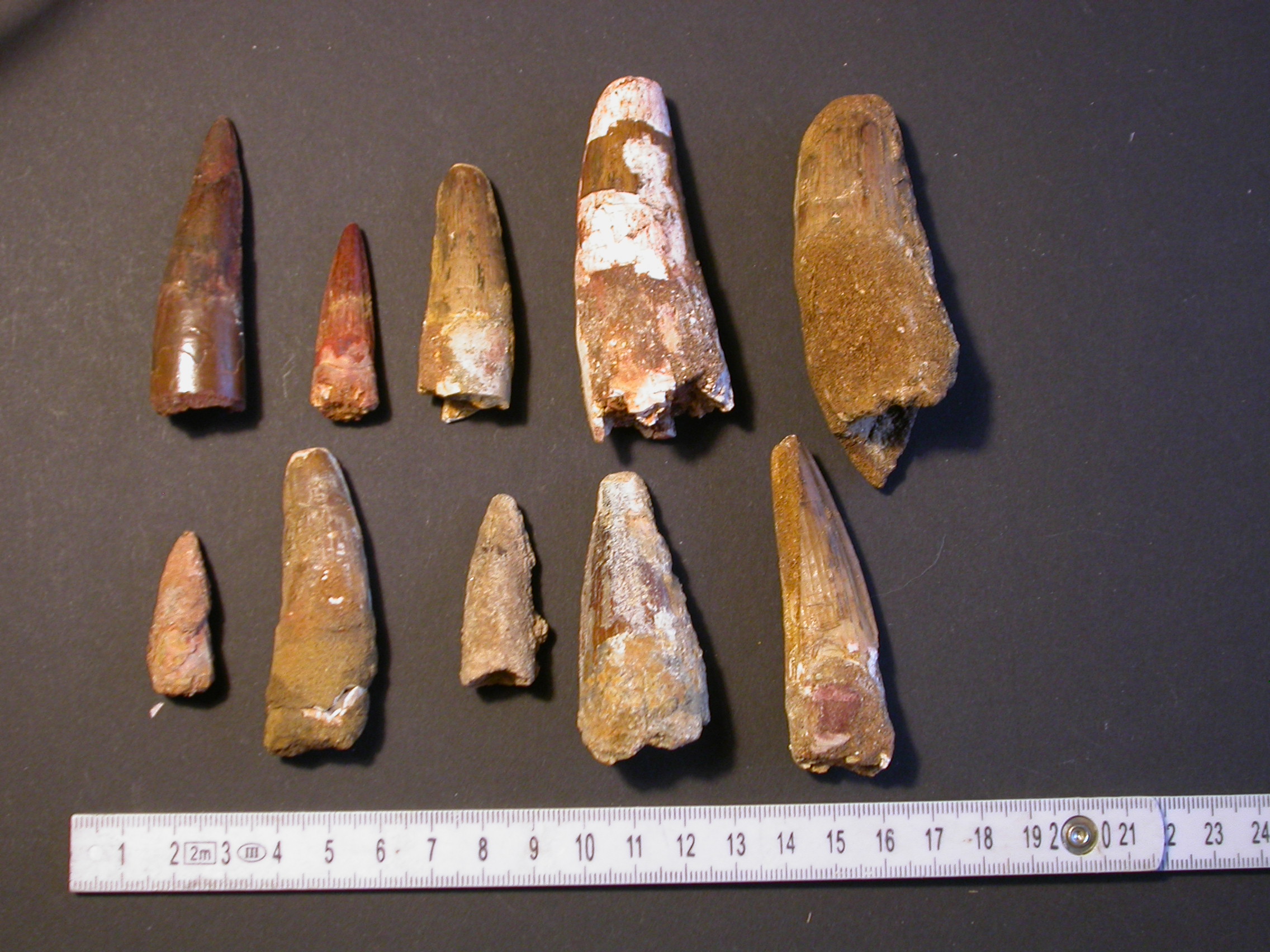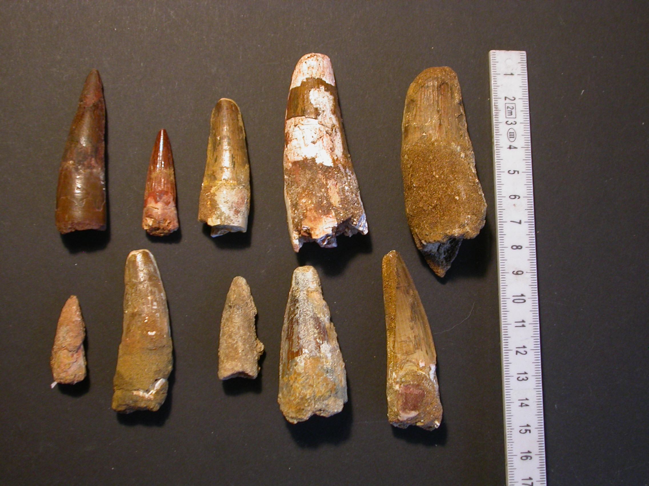 Spinosaurus tænder 10 stk. Ialt 214 gram, mellem 112-97 millioner år gammel, fra Marokko. Prisen er ink forsendelse i Danmark. Vare nr. 0003